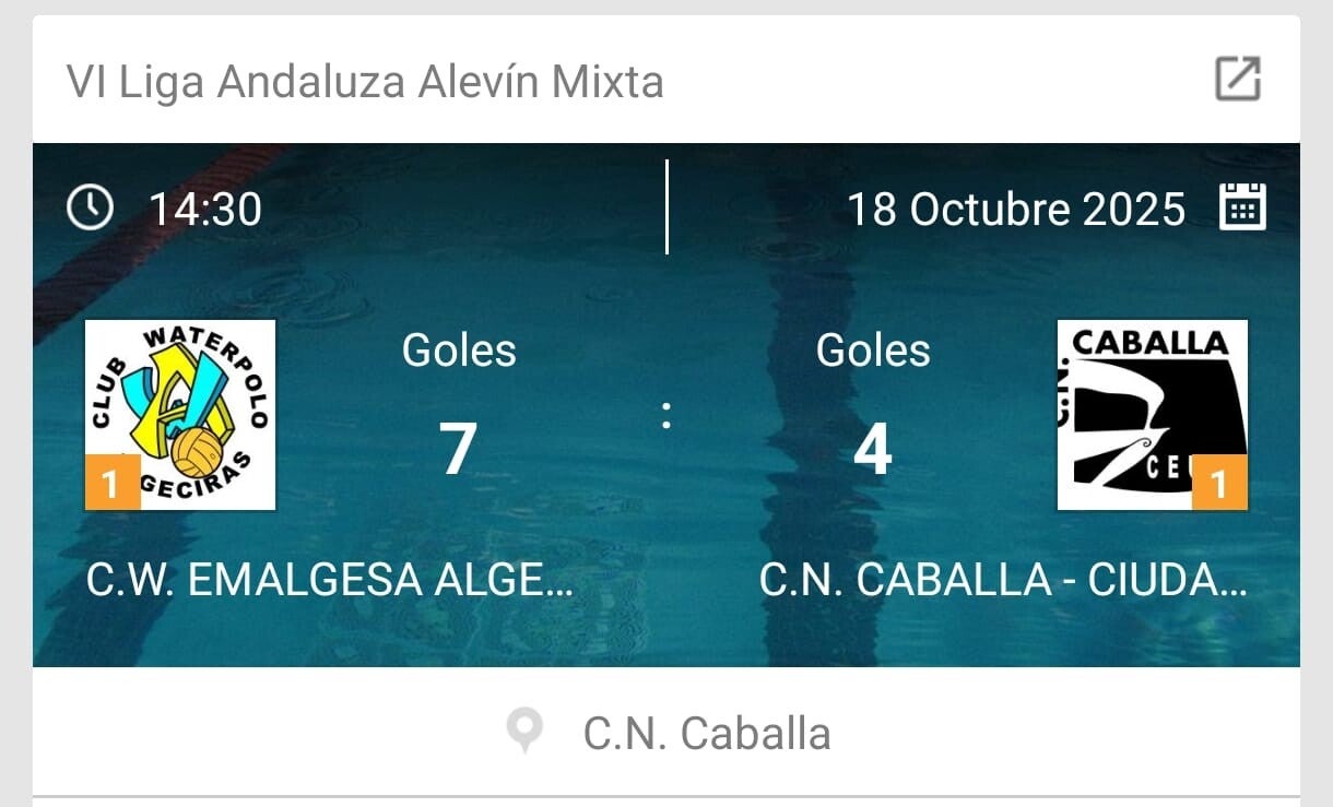 Los alevines jugaron el sábado dos partidos en Ceuta el primero contra el Club Natación Caballa "A" donde consiguieron una victoria ajustada por 3 goles a 5 y el segundo partido lo jugaron contra el equipo "B" del Club Natación Caballa un partido que también fue igualado pero los algecireños supieron marcar un poco mas la diferencia y lo ganaron por 7 goles a 4.